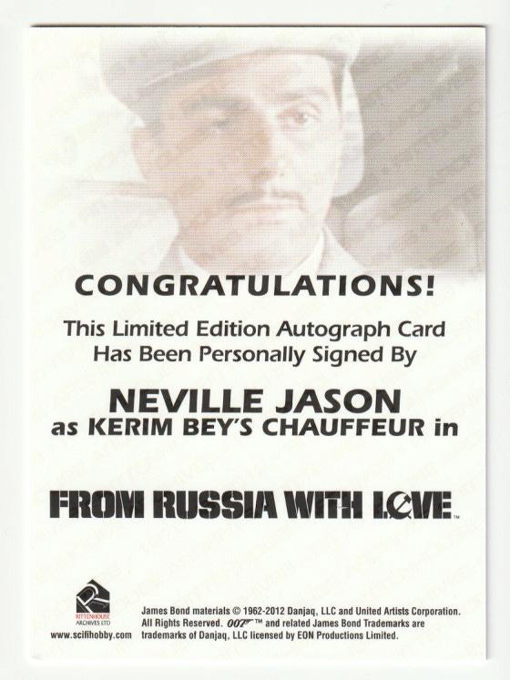 2013 RITTENHOUSE James Bond Autographs and Relics Full Bleed Autographs Neville Jason