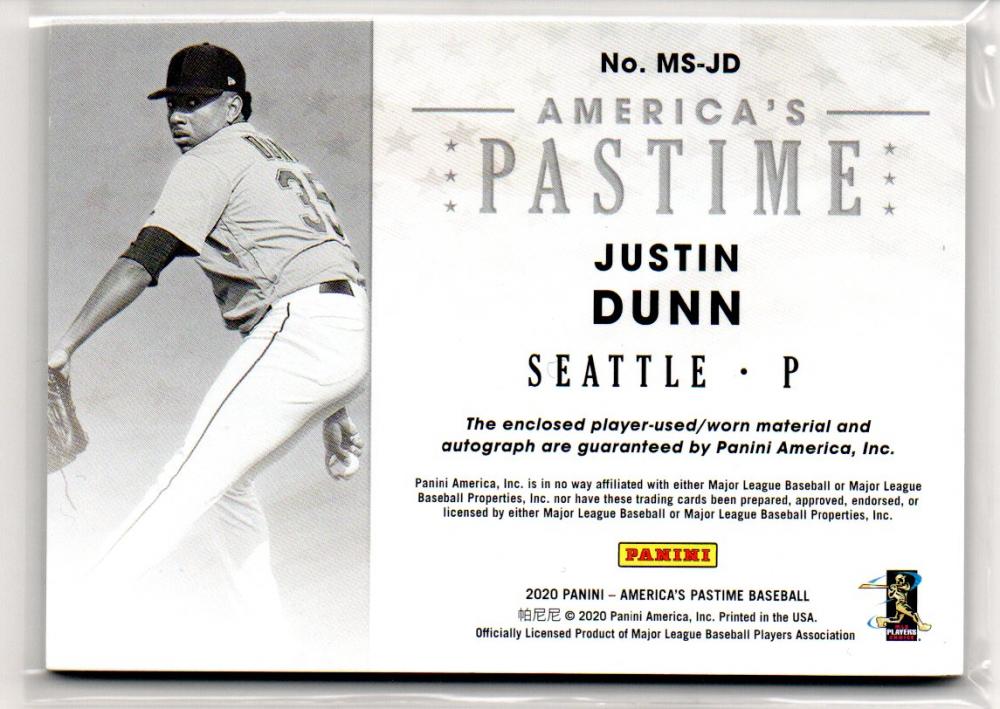 2020 Panini Chronicles Justin Dunn America's Pastime Patch Autographs 04/25
