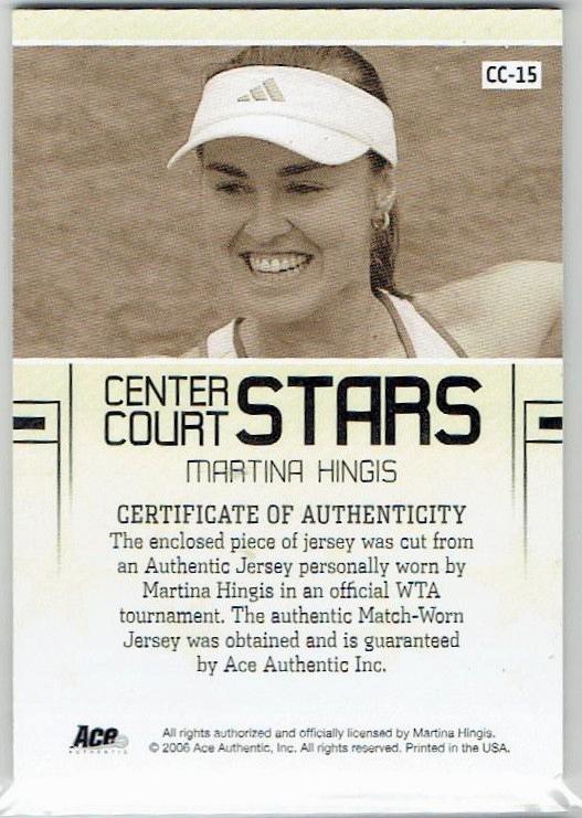 2006 Ace AUTHENTIC Center Court Stars Jersey Card Martina Hingis