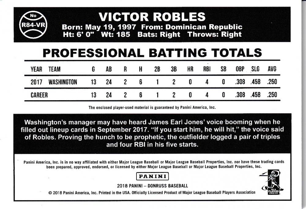 2018 Panini Donruss Washington Nationals Victor Robles '84 Retro Materials