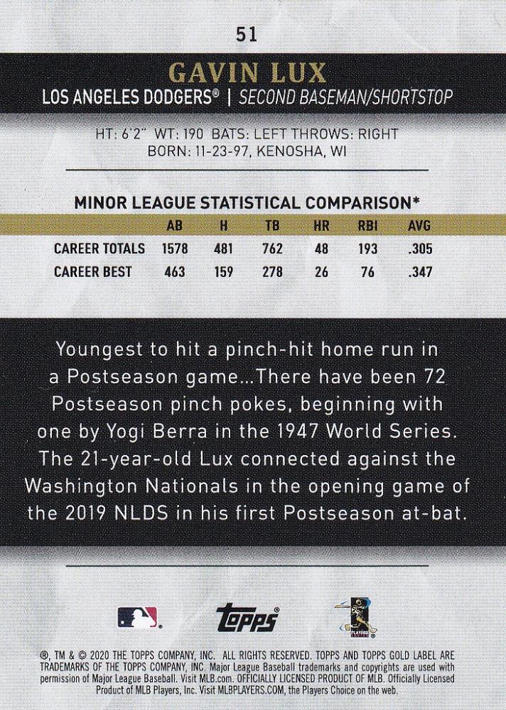 2020 Topps Gold Label Los Angeles Dodgers Gavin Lux Class 1
