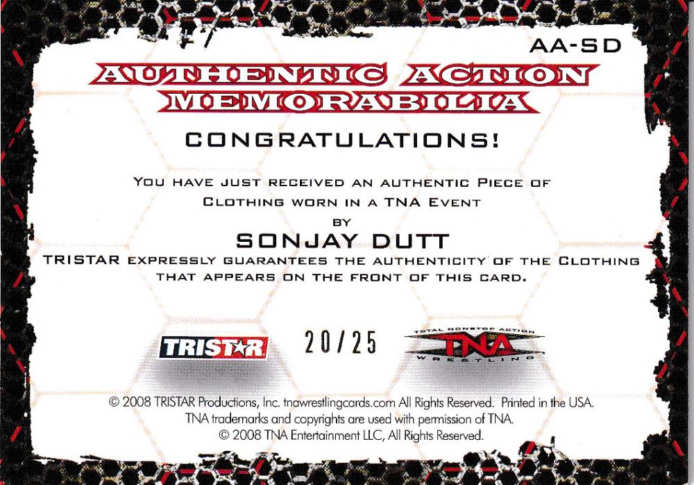 2008 TRISTAR TNA Sonjay Dutt Impact Memorabilia Goldパラレル版 20/25