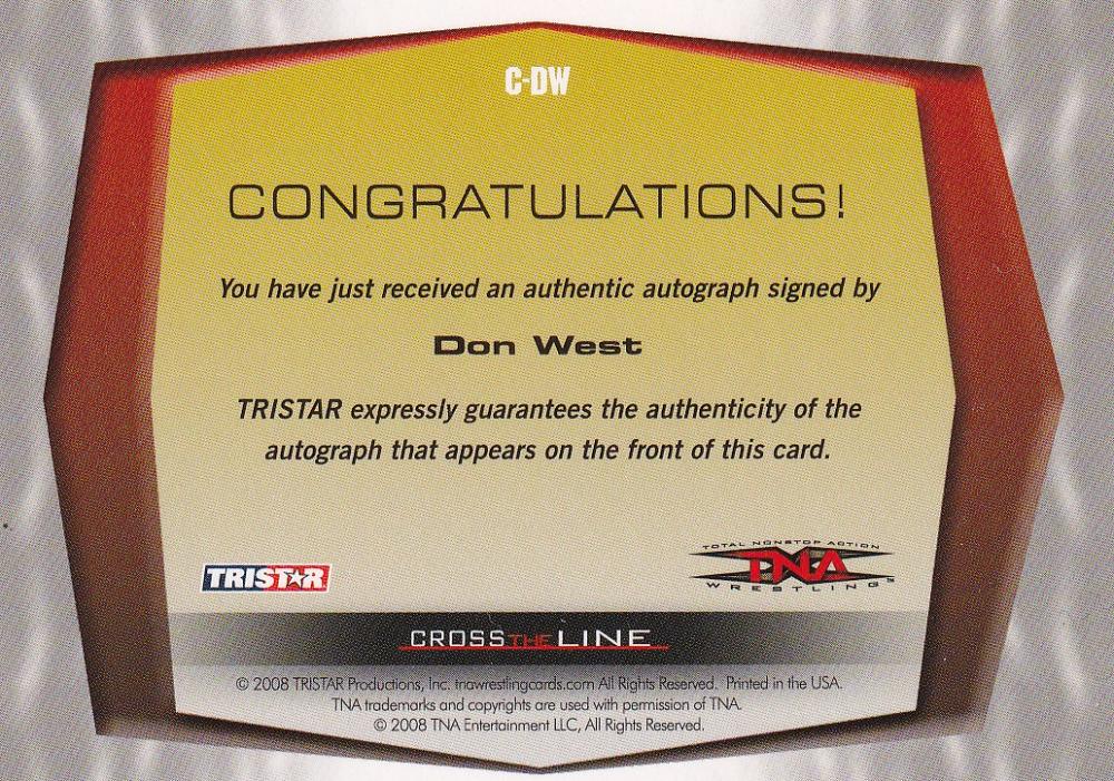 2008 TRISTAR TNA Don West Cross the Line Autographs Silver