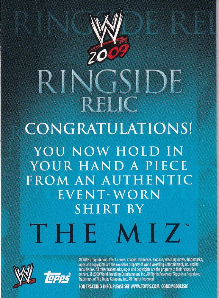 2009 Topps WWE The Miz Event-Worn Ringside Relics