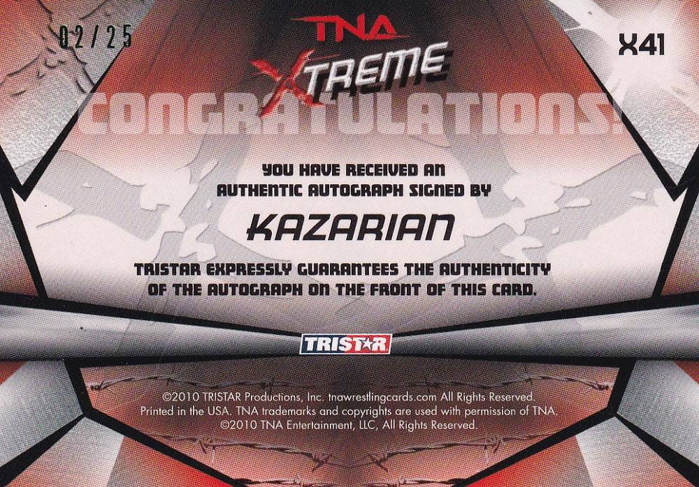 2010 TRISTAR TNA Xtreme Kazarian Autographs Greenパラレル版 02/25