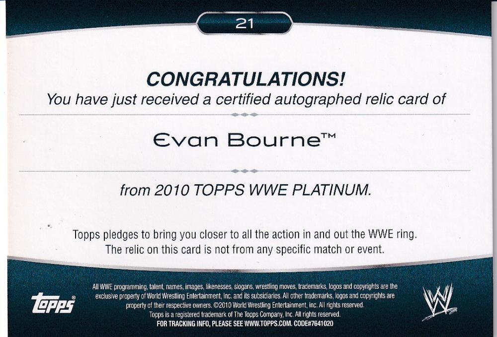 2010 Topps Platinum Evan Bourne Autographed Relics Blueパラレル版 43/99