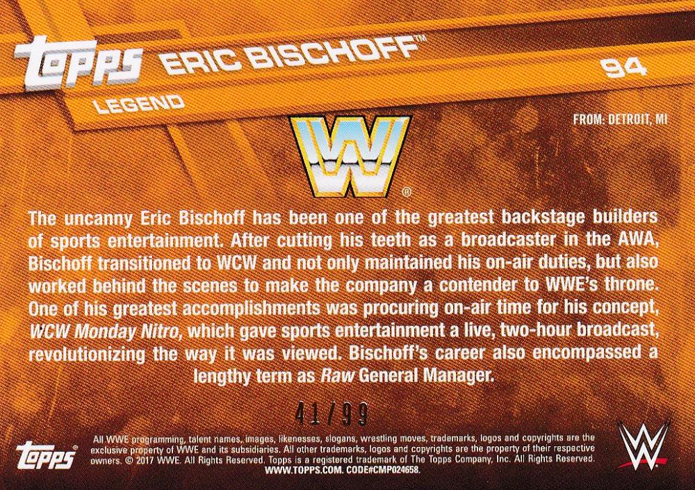 2017 Topps WWE Eric Bischoff Autographs 41/99