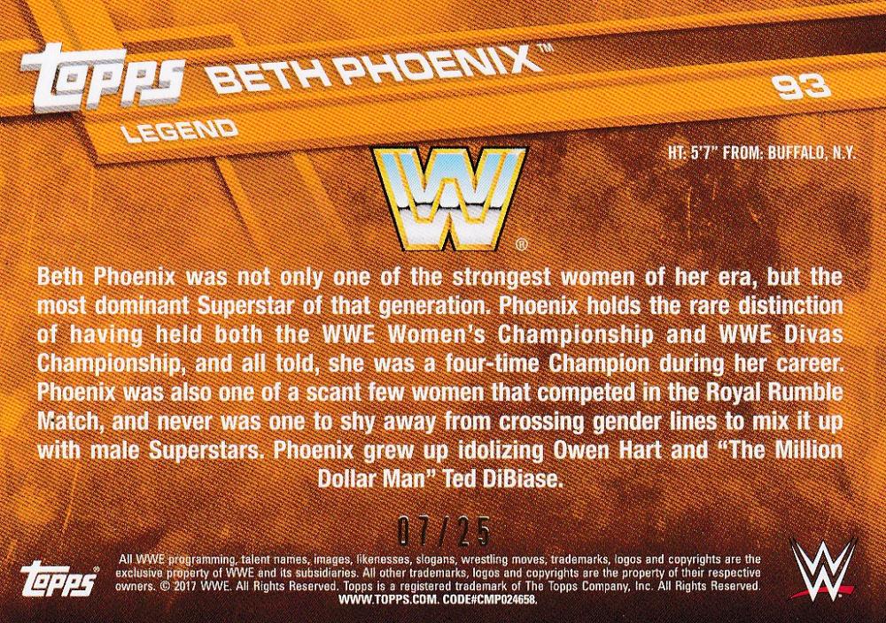 2017 Topps WWE Beth Phoenix Autographs Silverパラレル版 07/25