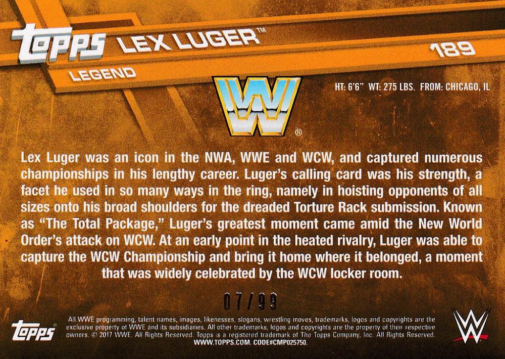 2017 Topps WWE Then Now Forever Lex Luger Autographs 07/99