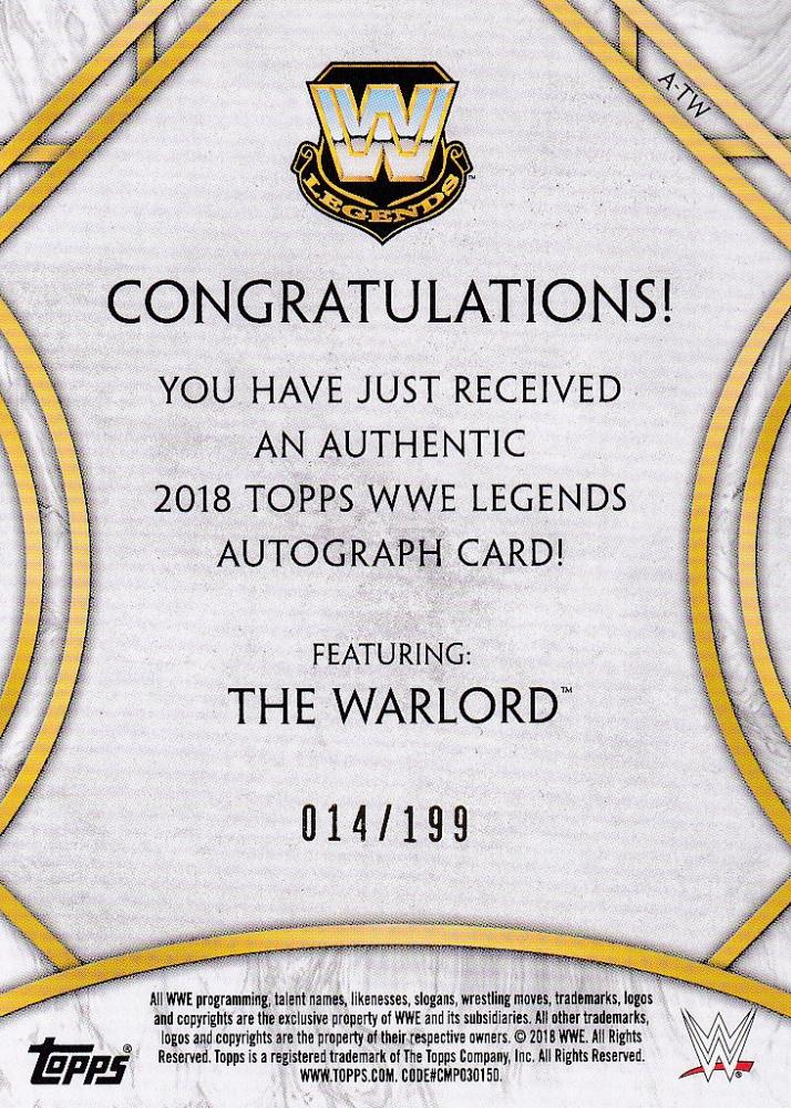 2018 Topps Legends of WWE The Warlord Autographs 014/199