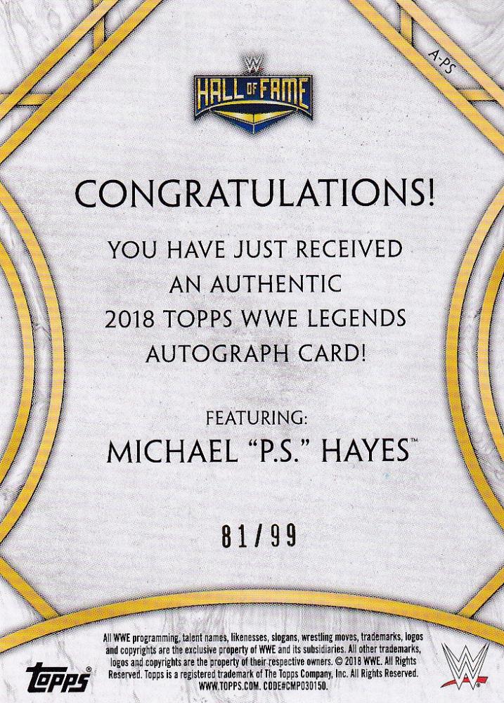 2018 Topps Legends of WWE Michael"P.S."Hayes Autographs 81/99
