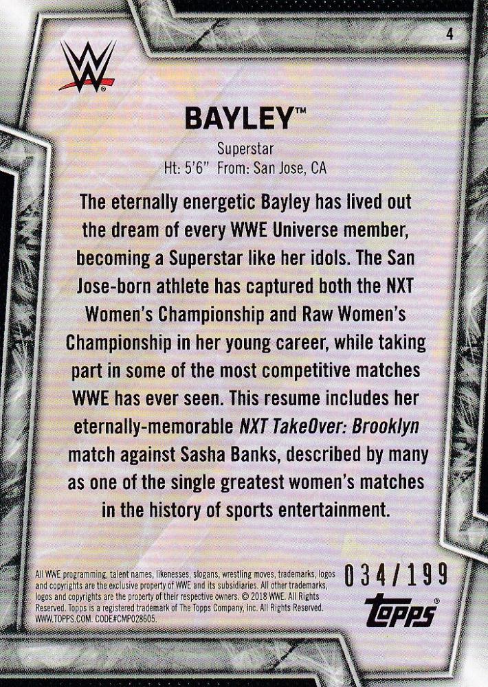 2018 Topps WWE Women's Division Bayley Autographs 034/199