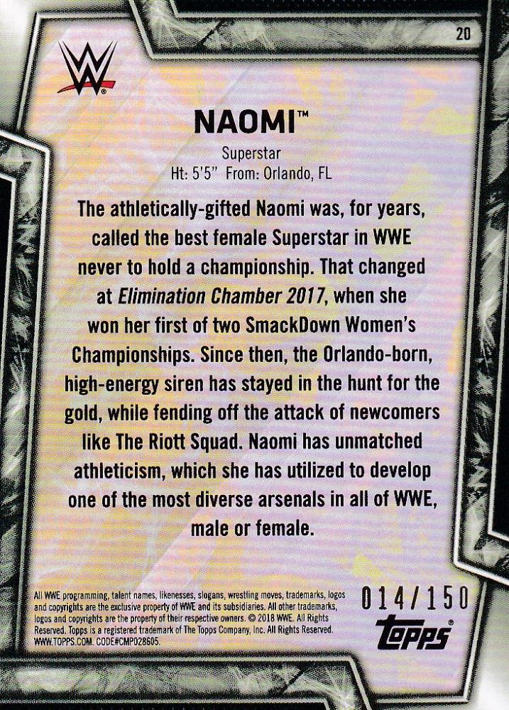 2018 Topps WWE Women's Division Naomi Autographs Greenパラレル版 014/150
