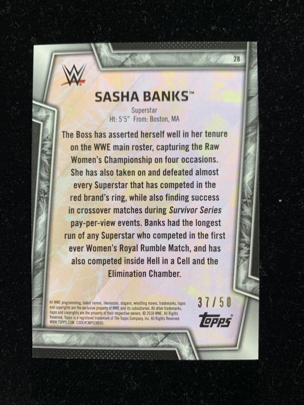 2018 Topps WWE Women's Division Sasha Banks Autographs Silverパラレル版 37/50