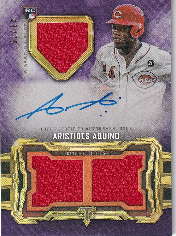 2020 Topps Triple Threads Baseball Cincinnati Reds Aristides Aquino Base Rookies & Future Phenoms Autographed Relic, Amethyst Parallel 43/75