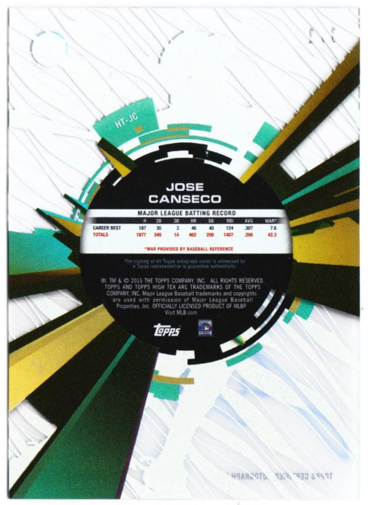 2015 TOPPS High Tek Jose Canseco Autograph Printing Proof 1枚限定 /1
