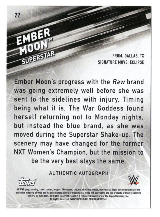 2019 Topps WWE SmackDown Live Ember Moon Autograph 23/50