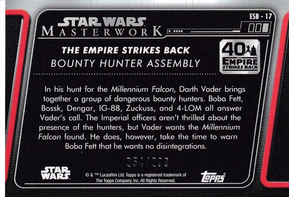 2020 Topps Star Wars Masterwork Bounty Hunter Assembly The Empire Strikes Back 40th Anniversary Rainbow Foilパラレル版 254/299