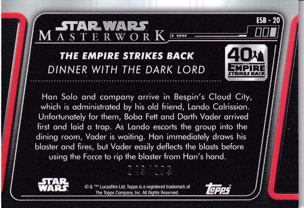 2020 Topps Star Wars Masterwork Dinner with the Dark Lord The Empire Strikes Back 40th Anniversary Rainbow Foilパラレル版 243/299