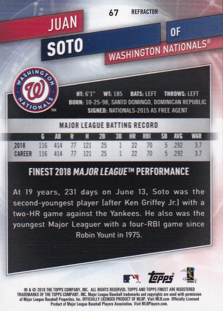 2019 Topps Finest Washington Nationals Juan Soto Base Refractors パラレル版