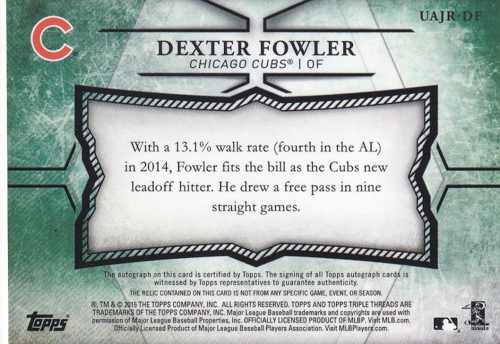 2015 Topps Triple Threads Chicago Cubs Dexter Fowler Unity Relic Autographs Emerald パラレル版 14/50