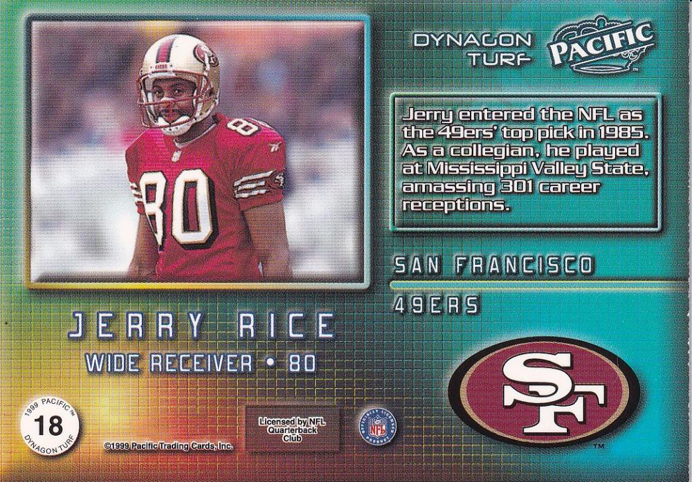 ※縁焼け有 画像参照 1999 Pacific San Francisco 49ers Jerry Rice Dynagon Turf