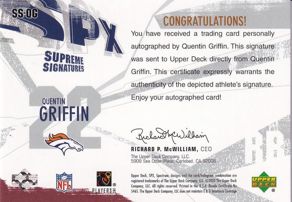 2003 SPx Denver Broncos Quentin Griffin Supreme Signatures