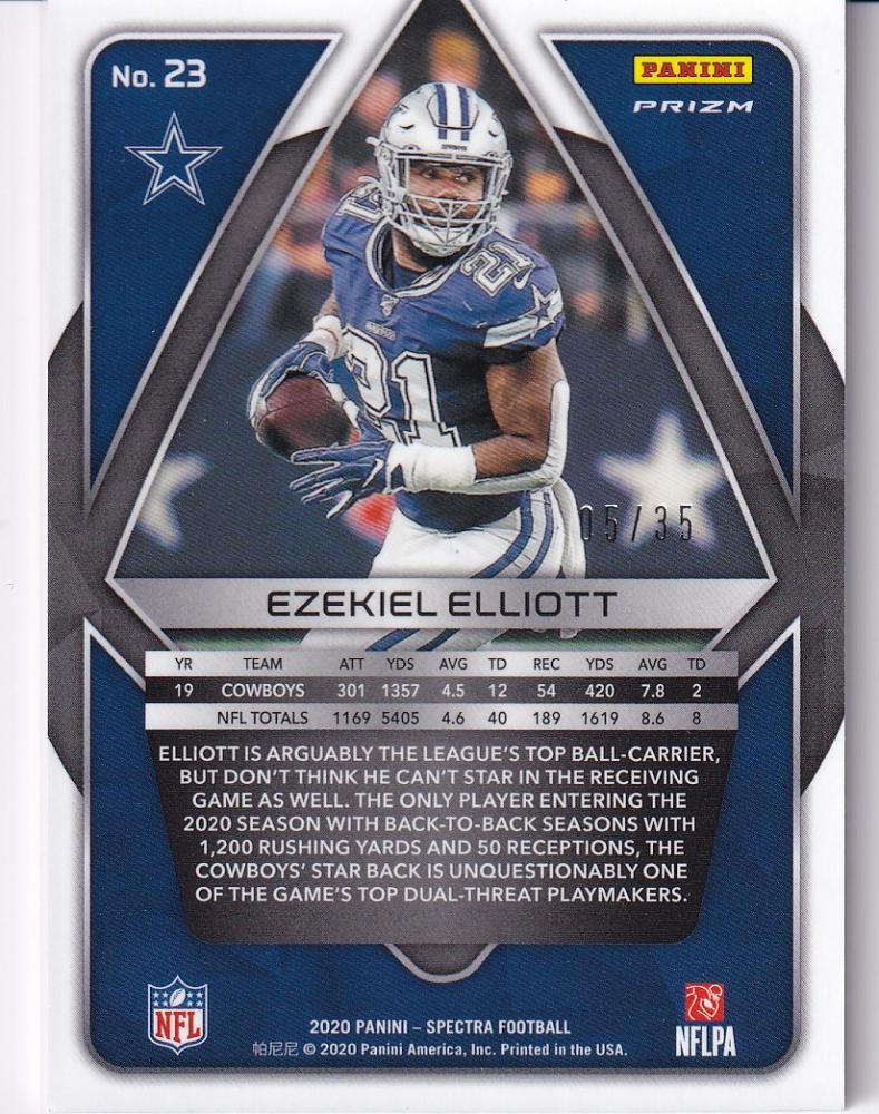 2020 Panini Spectra Dallas Cowboys Ezekiel Elliott Base Neon Greenパラレル版 05/35