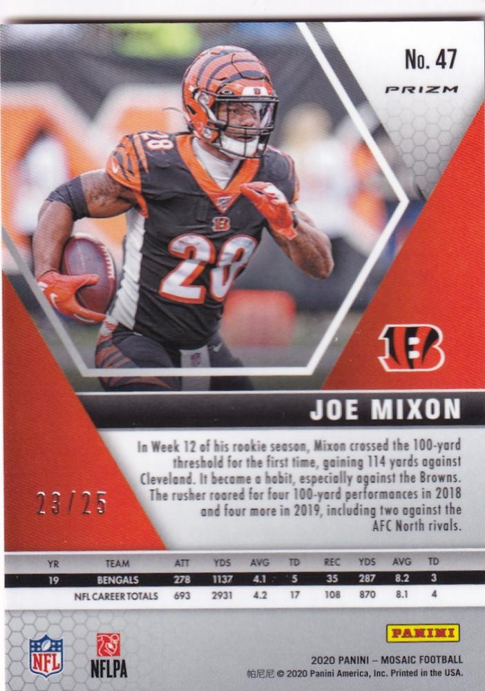 2020 Panini Mosaic Cincinnati Bengals Joe Mixon Base Mosaic Orange Fluorescentパラレル版 23/25