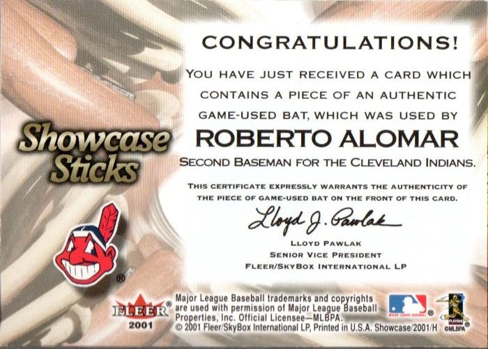 2001 FLEER Showcase Roberto Alomar Game Used Bat