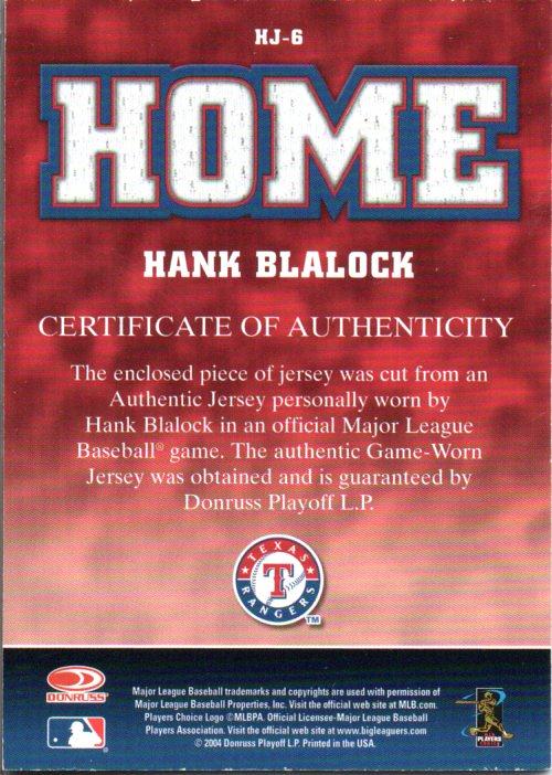 2005 DONRUSS Leaf Hank Blalock Game Worn Jersey