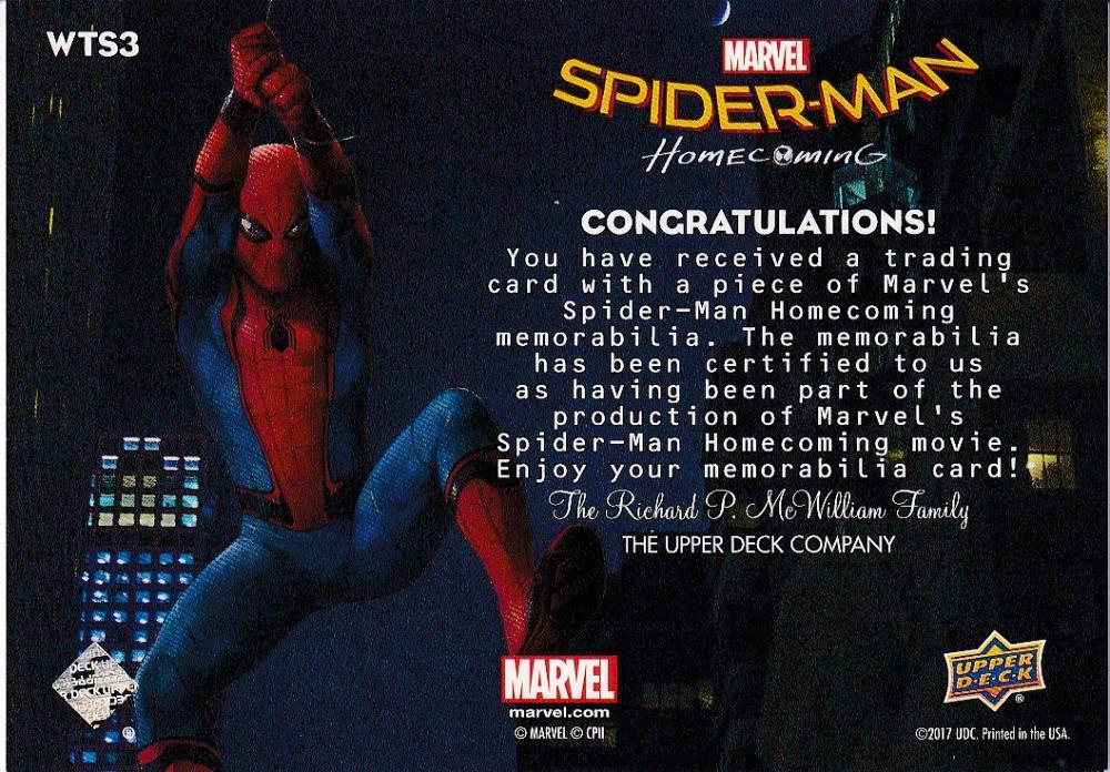 2017 Upper Deck Spider-Man Homecoming Spider-Man Webbed Threads Single Memorabilia Homemade Suit Torso