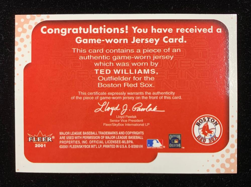 2001 Fleer E-X Boston Red Sox Ted Williams Behind the Numbers Game Jersey