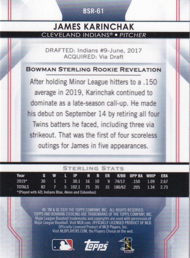 2020 Topps Bowman Sterling Cleveland Indians James Karinchak Base