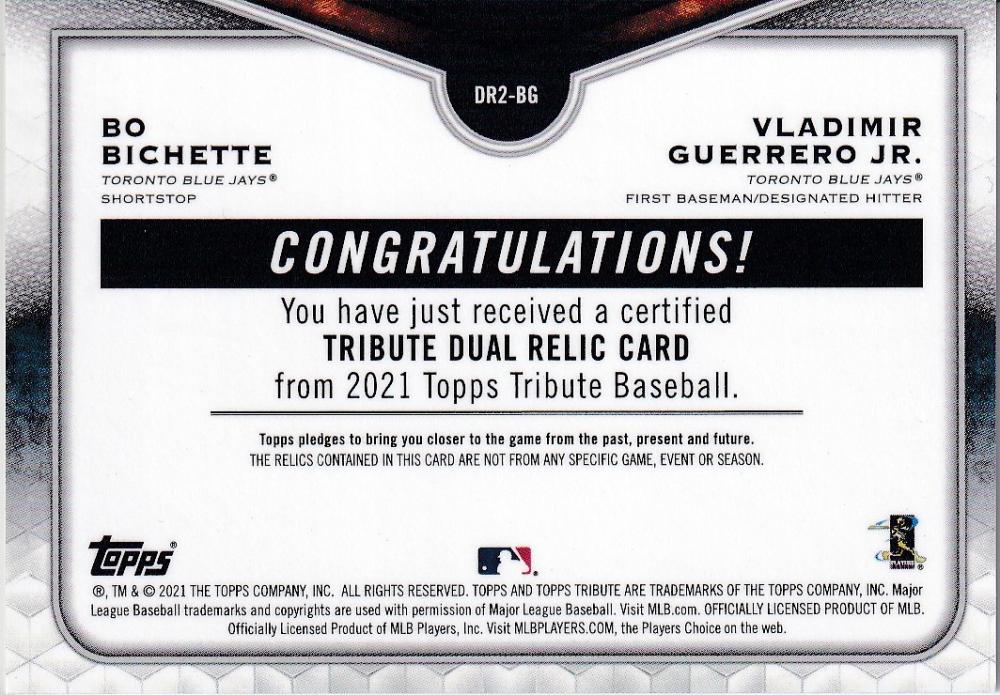 2021 Topps Tribute Toronto Blue Jays Bo Bichette/Vladimir Guerrero Jr. Dual Relics 077/150