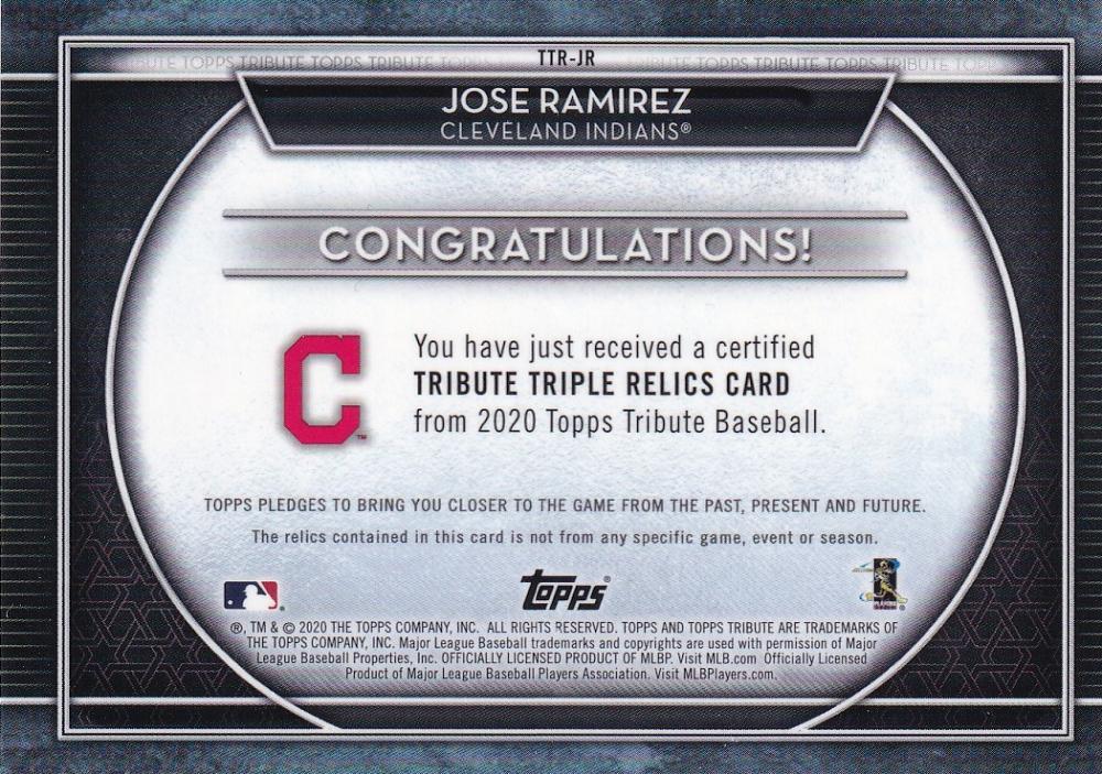 2020 Topps Tribute Cleveland Indians Jose Ramirez Triple Relics 098/150