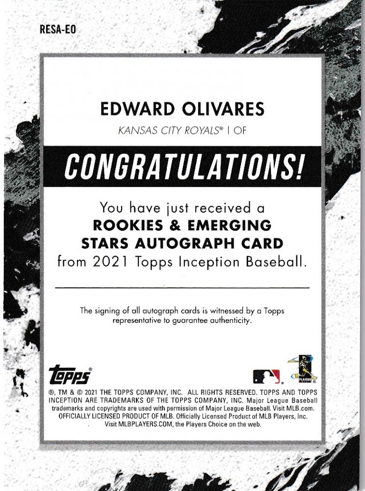 2021 Topps Inception Kansas City Royals Edward Olivares Rookie and Emerging Stars Autographs 238/249