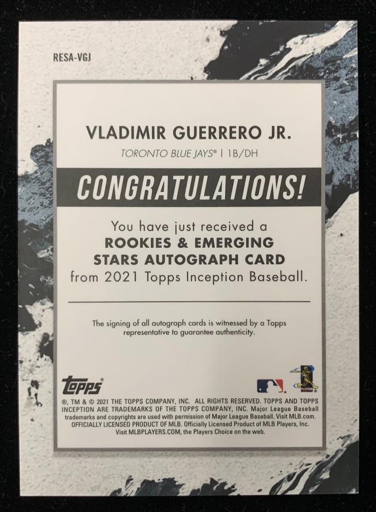 2021 Topps Inception Toronto Blue Jays Vladimir Guerrero Jr. 2021 Topps Inception Rookie and Emerging Stars Autographs 53/75