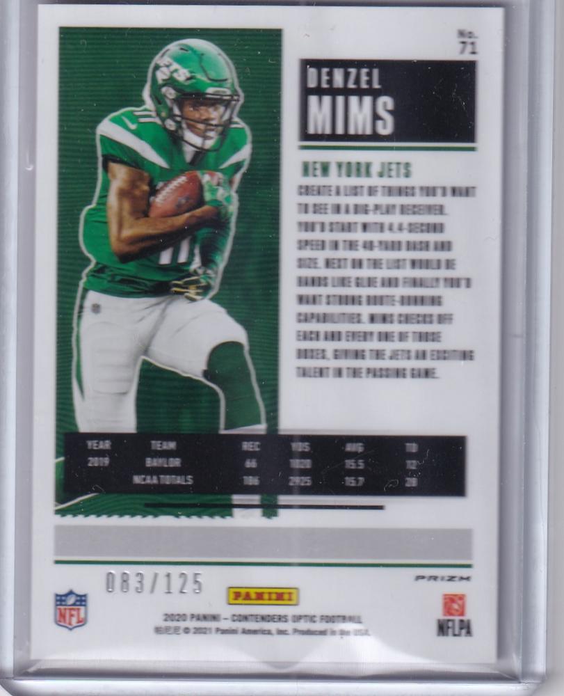 2020 Panini Contenders Optic New York Jets Denzel Mims Rookie Ticket Red(パラレル版) 083/125