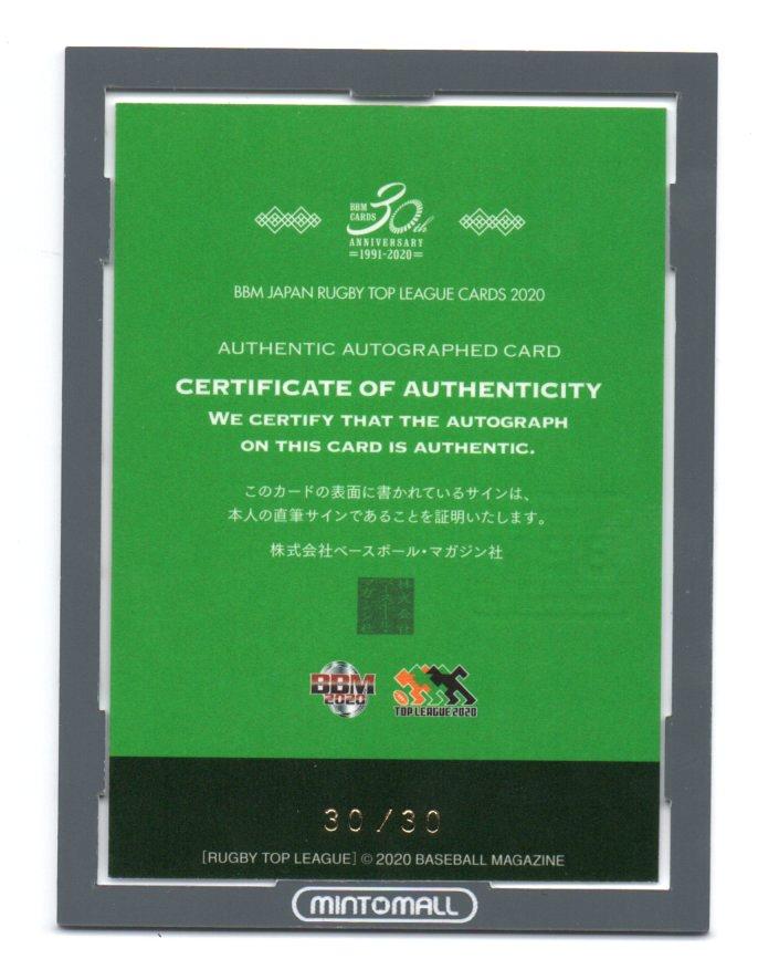 2021 BBM Rugby Tops League ラグビー  ラファエレ・ティモシー  スペシャル直筆サインカード縦型(Lastナンバー!) 30/30