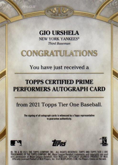 2021 Topps Tier One Gio Urshela Autographs 160/300