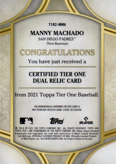 2021 Topps Tier One Manny Machado Relics Dual Patch 03/25