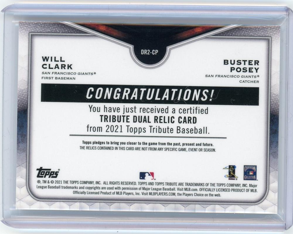 2021 Topps Tribute San Francisco Giants Buster Posey/Will Clark Dual Relics Green(パラレル版) 35/99