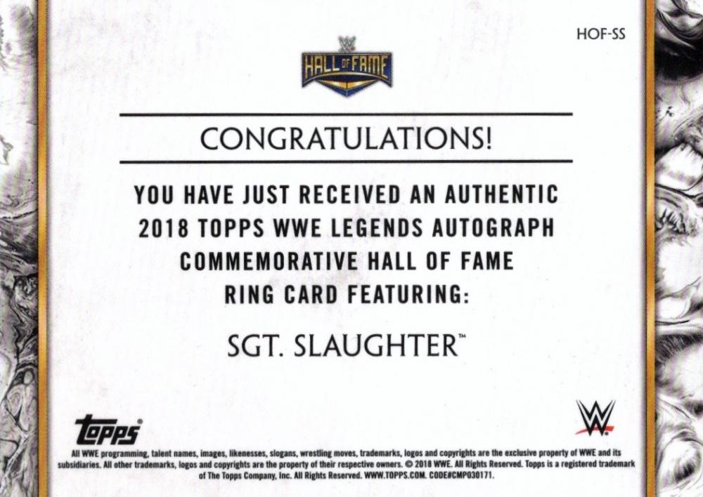 2018 Topps Legends of WWE Sgt. Slaughter Autographed Commemorative Hall of Fame Rings Gold #HOFSS 01/10