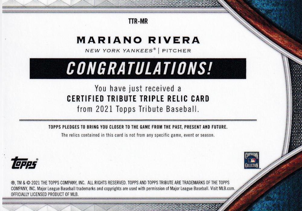 2021 Topps Tribute New York Yankees Mariano Rivera Triple Relics Purple (パラレル版) 27/50