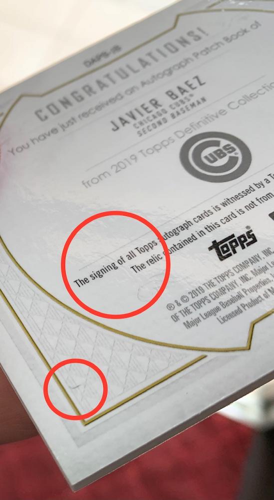 2019 Topps Definitive Collection Chicago Cubs Javier Baez Autograph Patch Book Collection (1stナンバー!) 1/5