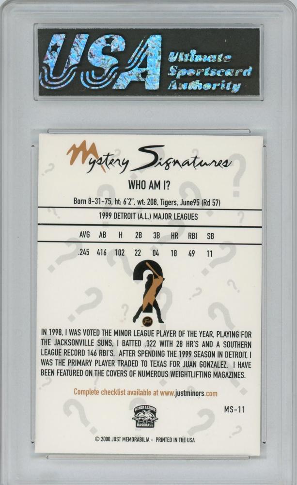 2000 Just Graded 2K Mystery Signatures #MS11 (USA 9.5) Detroit Tigers Gabe Kapler