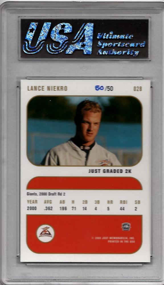 2000 Just Graded 2k Black-Bordered #28 (USA 9.0) Salem-Keizer Volcanoes Lance Niekro 50/50