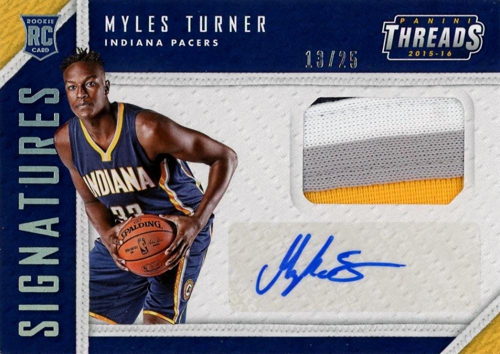 2015-16 Panini Threads Myles Turner Rookie Threads Signatures Prime Auto RC #13 13/25