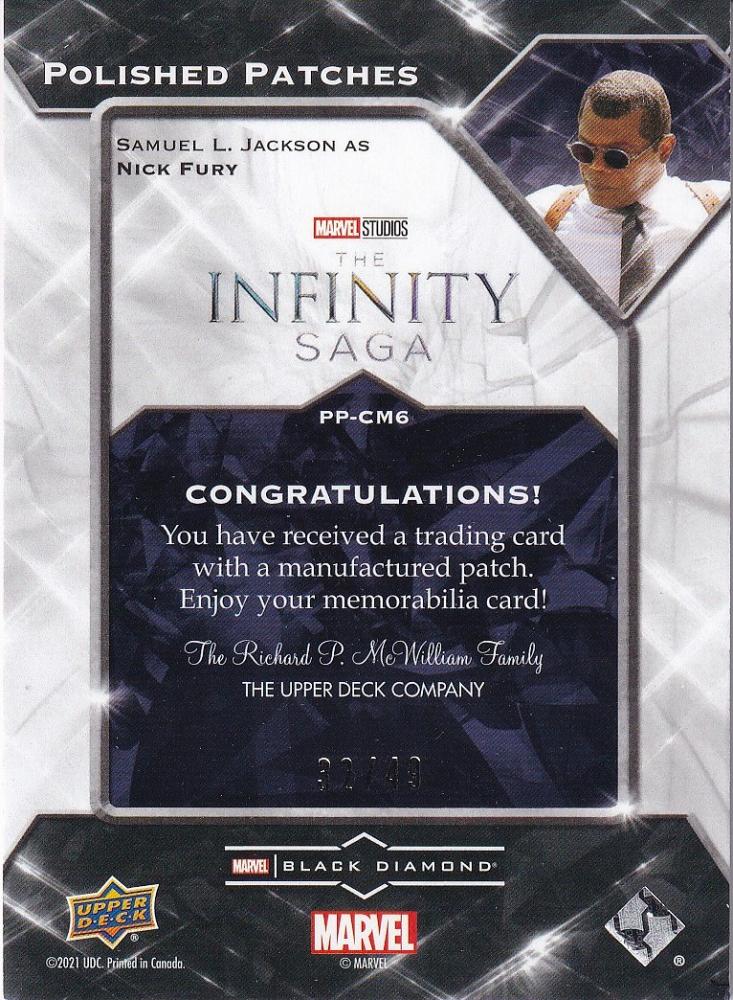 2021 Upper Deck Marvel Black Diamond Samuel L. Jackson as Nick Fury Polished Patches Manufactured Relics 32/49